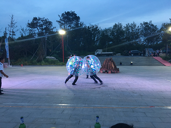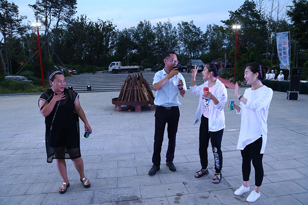 領導為大家點燃篝火