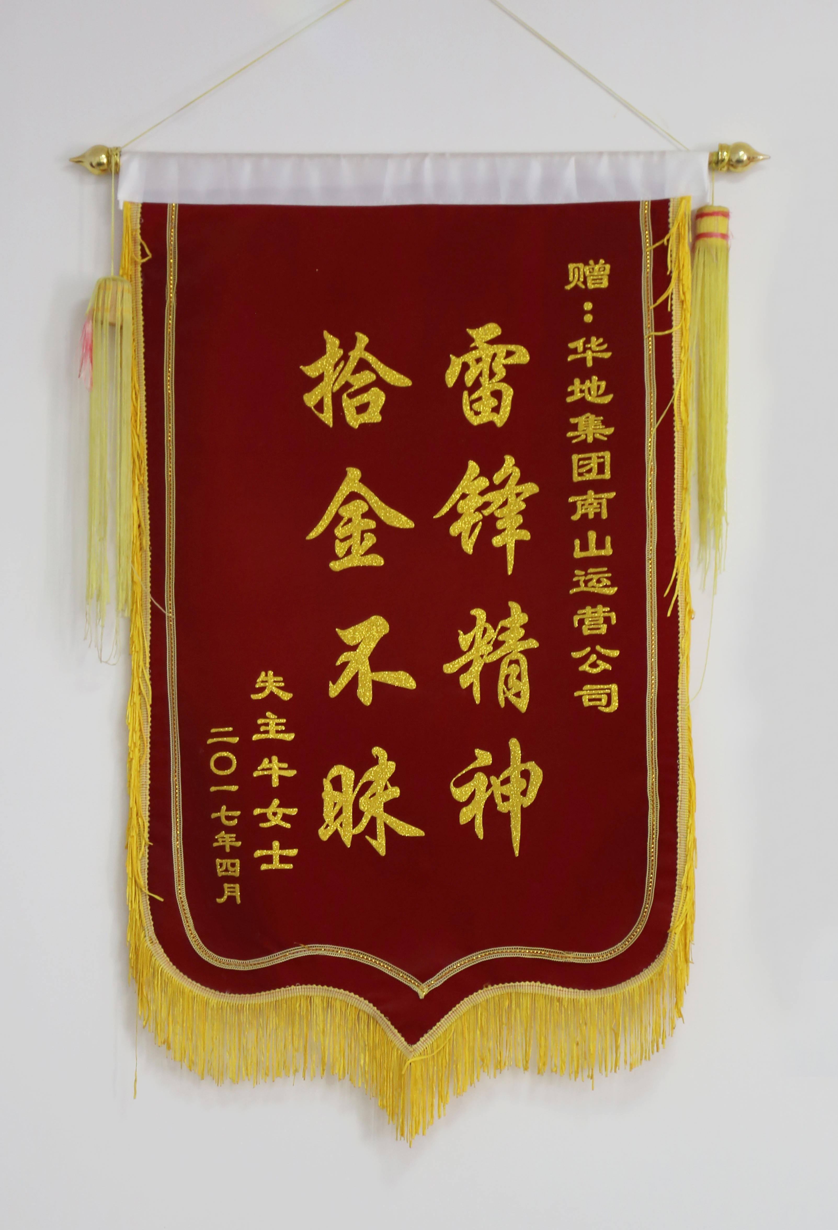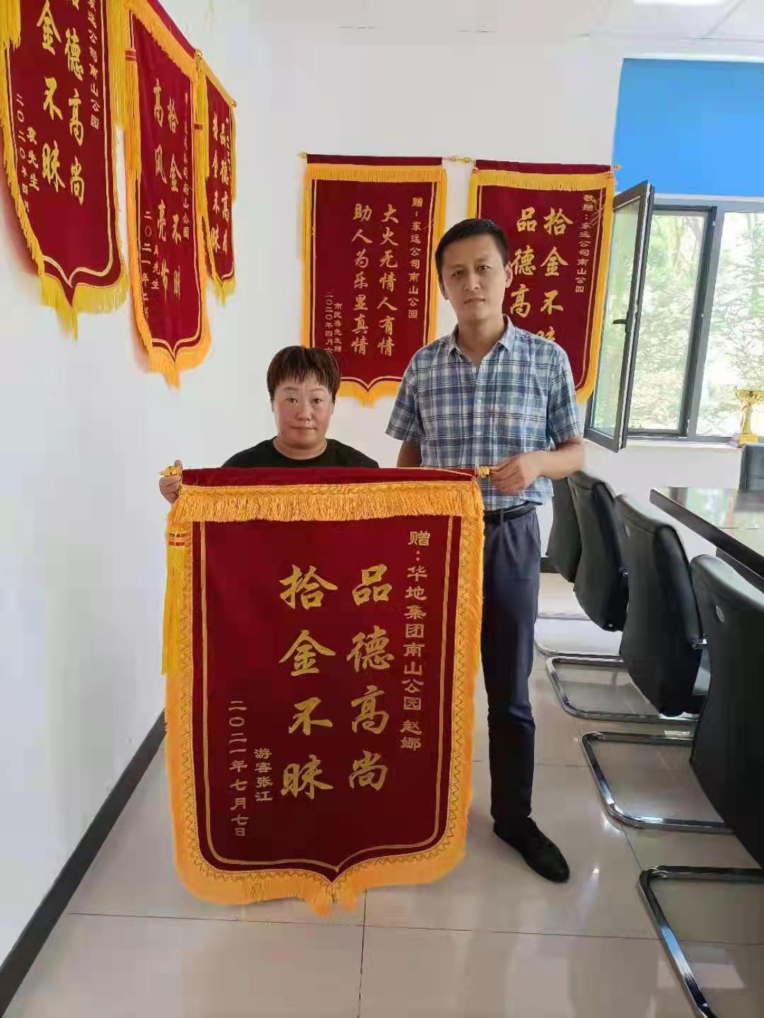 遺失物品登記本上登記著無數(shù)條記錄,身份證、鑰匙、包、手機、錢等等。那里也記錄了我們所有工作人員365天堅守崗位的執(zhí)著與延續(xù)的雷鋒精神。在那會議室墻面上掛著的一面面錦旗承載了市民對于我們華地集團東遠人的一份感恩、一份贊許、一份鼓勵。他們用實際行動踐行了作為南山公園守護者的責任與擔當。