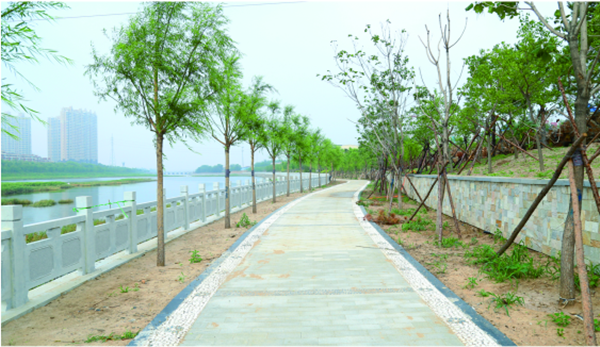 錦州市女兒河生態(tài)修復(fù)工程建設(shè),總面積185743平方米,岸坡總長(zhǎng)4210米,道路及鋪裝面積23000平方米,給排水管道4200米,風(fēng)景石2040噸,安裝太陽(yáng)能庭院燈200盞;種植樹木9000株,修剪籬、地被等54762平方米,草地36374平方米。