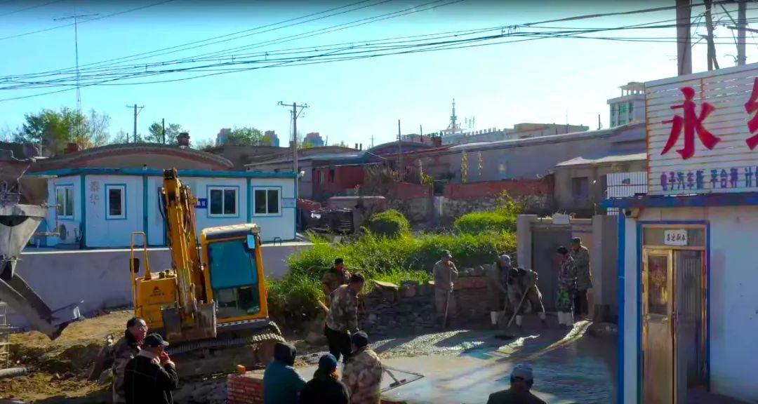 目前施工情況:居民住宅的院墻修復(fù)、平臺修復(fù),路燈基礎(chǔ)、人行道方磚鋪設(shè)進行中,瀝青路面攤鋪及道路標線已完成,本段道路已具備通車條件。